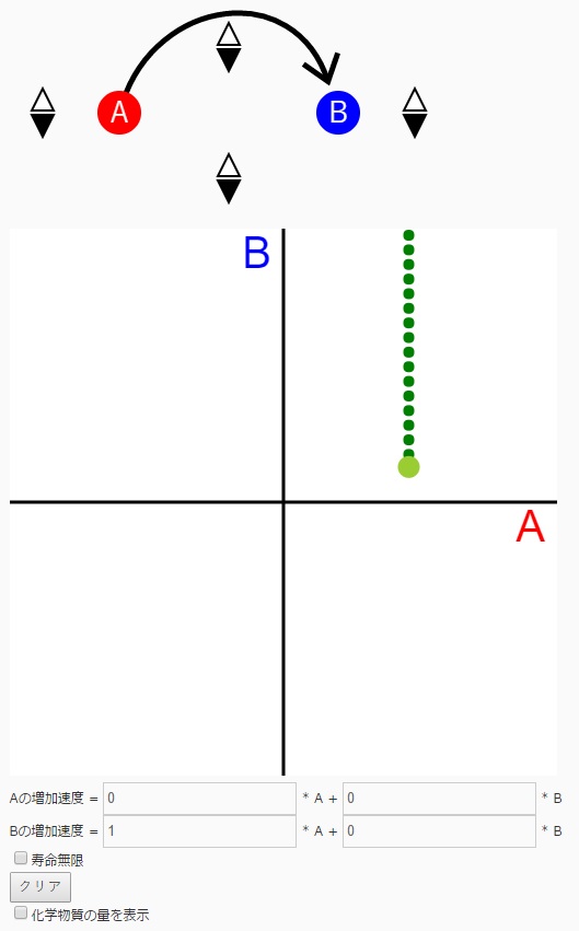 A軸上の速度ってつまり、Bが0のときのAの増える速度とBの増える速度ですからね。Aが作り出す速度だけ考えれば良いんです。