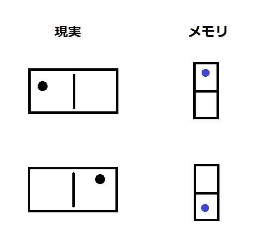 では情報の記録のしかたは完全に自由なのでしょうか?そうではありません。情報には必ず解釈が必要です。ミニチュア版と左右反転ミニチュア版は両方共正しい情報の記録のしかたになりえますが、それもきちんとその情報を解釈するシステムがあってこそなのです。つまり誰にも読めない汚い字(書いた当人にすら読めない!)には意味はありません(もちろん、遠い未来に開発される超コンピューターに解読できるなら、ちゃんと意味はあります)。情報の記録方法は自由ですが、それでも優劣は歴然として存在しており、意図したとおりに解釈されやすい方法の方が優れているのです。