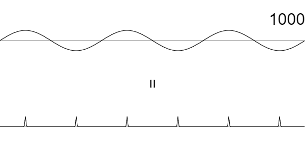 ではかける波を一つ増やしてみましょう。波を1001回かけるのです。するとトゲトゲが上下交互に現れるようになります。トゲトゲ山とトゲトゲ谷の繰り返しです。