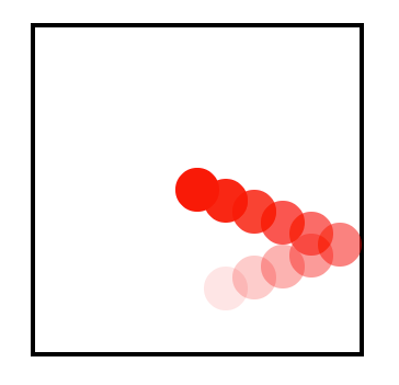ここでシミュレートされているのは、日常世界でいうと、2次元の箱の中をボールが動いている現象です。