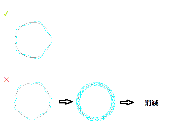 物理学者ド・ブロイはこの疑問の答えを発見しました。当時電子はとても小さな粒だと考えられていたのですが、電子が波だと考えれば、特定の波以外は打ち消し合い、限られた軌道だけが生き残るようになります。波というのは自分自身と綺麗につながる波以外は、自分自身の山と谷が重なり合い消えるものだからです。
