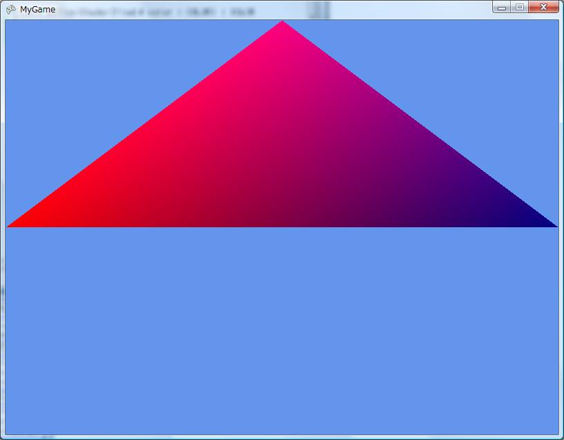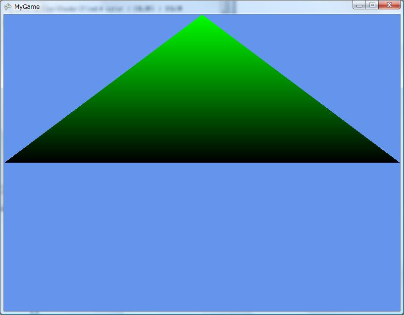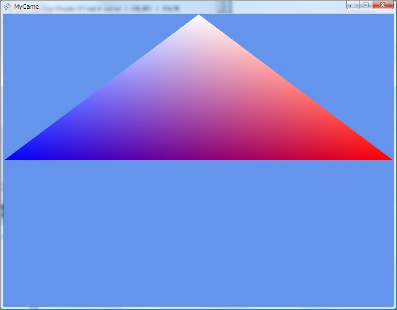 using Microsoft.Xna.Framework; using Microsoft.Xna.Framework.Graphics; class MyGame : Game { GraphicsDeviceManager graphics; Effect effect; VertexPositionColor[] vertices = { new VertexPositionColor(new Vector3(0, 1, 0), Color.White), new VertexPositionColor(new Vector3(1, 0, 0), Color.Blue), new VertexPositionColor(new Vector3(-1, 0, 0), Color.Red) }; public MyGame() { graphics = new GraphicsDeviceManager(this); } protected override void LoadContent() { effect = Content.Load<Effect>("Content/MyEffect"); } protected override void Draw(GameTime gameTime) { GraphicsDevice.Clear(Color.CornflowerBlue); foreach (var pass in effect.CurrentTechnique.Passes) { pass.Apply(); GraphicsDevice.DrawUserPrimitives<VertexPositionColor> ( PrimitiveType.TriangleList, vertices, 0, vertices.Length / 3 ); } } }