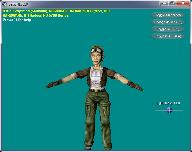 Texture2D diffuseTexture;SamplerState mySampler{};struct VertexPositionTexture{float4 Position : SV_Position;float2 TextureCoordinate : TEXCOORD;};VertexPositionTexture MyVertexShader(VertexPositionTexture input){return input;}float4 MyPixelShader(VertexPositionTexture input) : SV_Target{return diffuseTexture.Sample(mySampler, input.TextureCoordinate);}technique10 MyTechnique{pass MyPass{SetVertexShader( CompileShader( vs_5_0, MyVertexShader() ) );SetPixelShader( CompileShader( ps_5_0, MyPixelShader() ) );}}