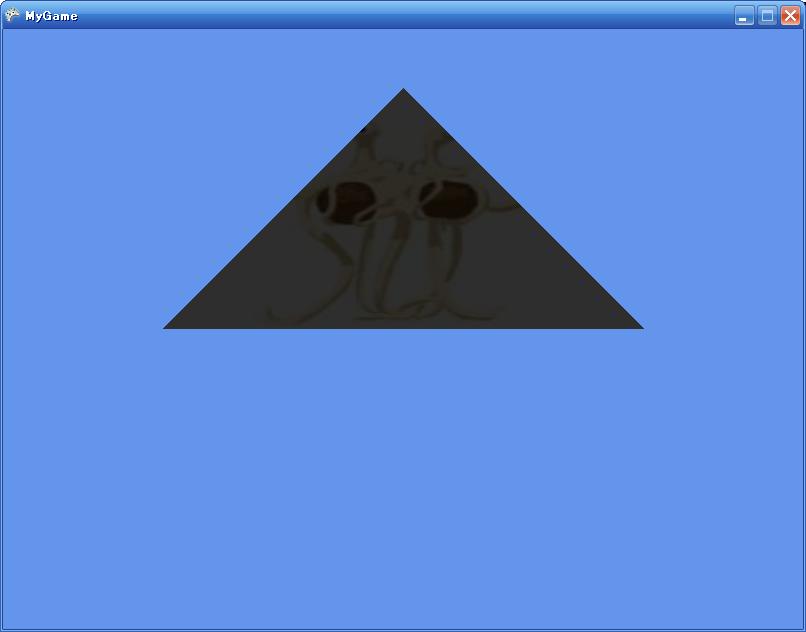 using Microsoft.Xna.Framework; using Microsoft.Xna.Framework.Graphics; class MyGame : Game { GraphicsDeviceManager graphics; BasicEffect effect; VertexPositionNormalTexture[] vertices = new[] { new VertexPositionNormalTexture { Position = new Vector3(0, 1, 0), Normal = new Vector3(0, 0, 1), }, new VertexPositionNormalTexture { Position = new Vector3(1, 0, 0), Normal = new Vector3(0, 0, 1), }, new VertexPositionNormalTexture { Position = new Vector3(-1, 0, 0), Normal = new Vector3(0, 0, 1), }, }; public MyGame() { graphics = new GraphicsDeviceManager(this); } protected override void LoadContent() { effect = new BasicEffect(GraphicsDevice) { LightingEnabled = true, View = Matrix.CreateLookAt ( new Vector3(0, 0, 3), //カメラの位置 new Vector3(0, 0, 0), //カメラの見る点 new Vector3(0, 1, 0) //カメラの上向きベクトル ), Projection = Matrix.CreatePerspectiveFieldOfView ( MathHelper.ToRadians(45), //視野の角度。ここでは45° GraphicsDevice.Viewport.AspectRatio,//画面のアスペクト比(=横/縦) 1, //カメラからこれより近い物体は画面に映らない 100 //カメラからこれより遠い物体は画面に映らない ) }; } protected override void UnloadContent() { effect.Dispose(); } protected override void Draw(GameTime gameTime) { GraphicsDevice.Clear(Color.CornflowerBlue); effect.DirectionalLight0.Direction = new Vector3(1, 0, -1); effect.DirectionalLight0.DiffuseColor = Color.Gray.ToVector3(); effect.DirectionalLight0.SpecularColor = Color.White.ToVector3(); foreach (var pass in effect.CurrentTechnique.Passes) { pass.Apply(); GraphicsDevice.DrawUserPrimitives<VertexPositionNormalTexture>( PrimitiveType.TriangleList, vertices, 0,//vertexOffset 1 //primitiveCount ); } } }