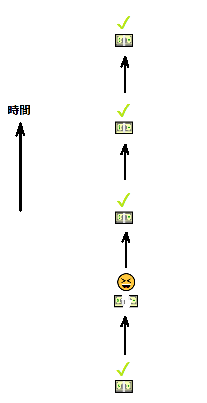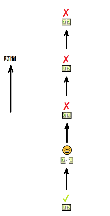 かわりの1ドルが作られる場合。1ドルが存在している宇宙の数は増えます。安定したものは、それが存在する宇宙の数が増えるのです。