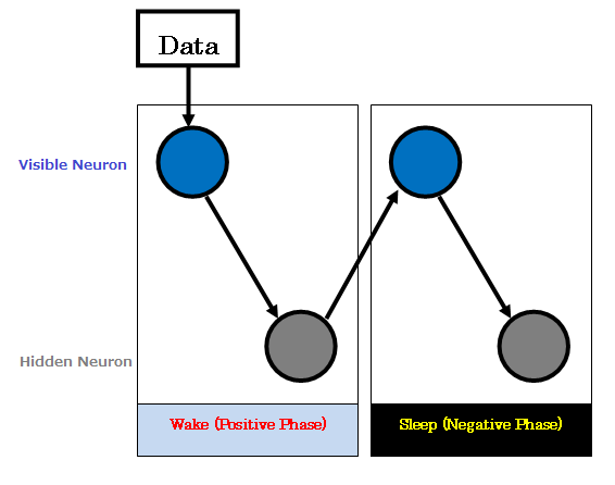 - 外部からの入力パターンを学習する(目が覚めている状態:Positive Phase)
