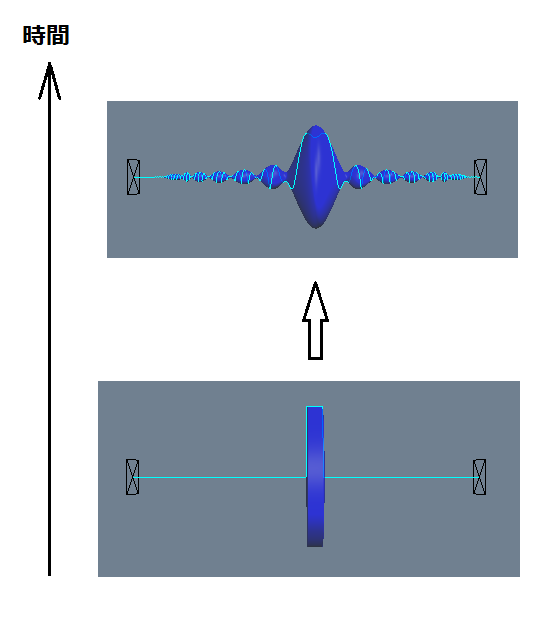 では試しに経路積分で波動関数を計算してみましょう。この2つは似た者同士なので、経路積分で古き良き波動関数の図を描くことができます。