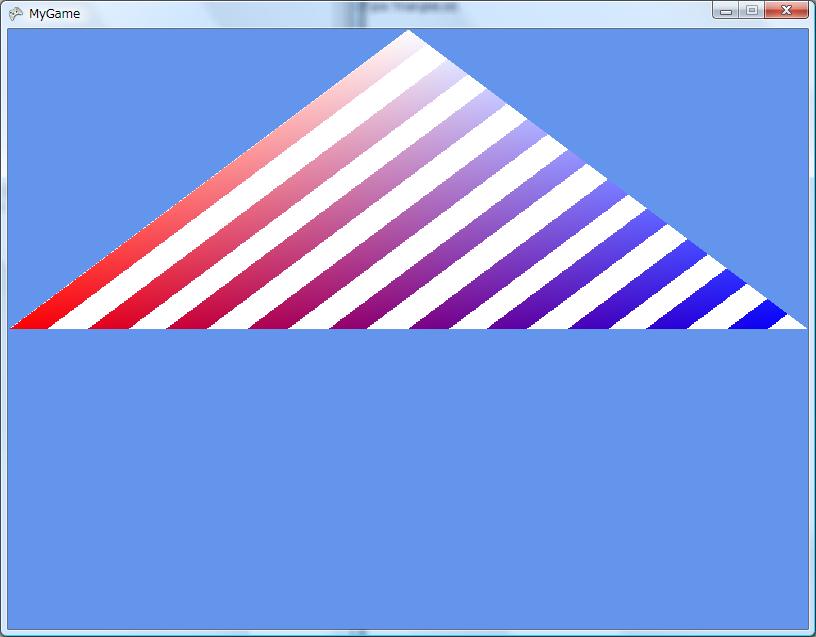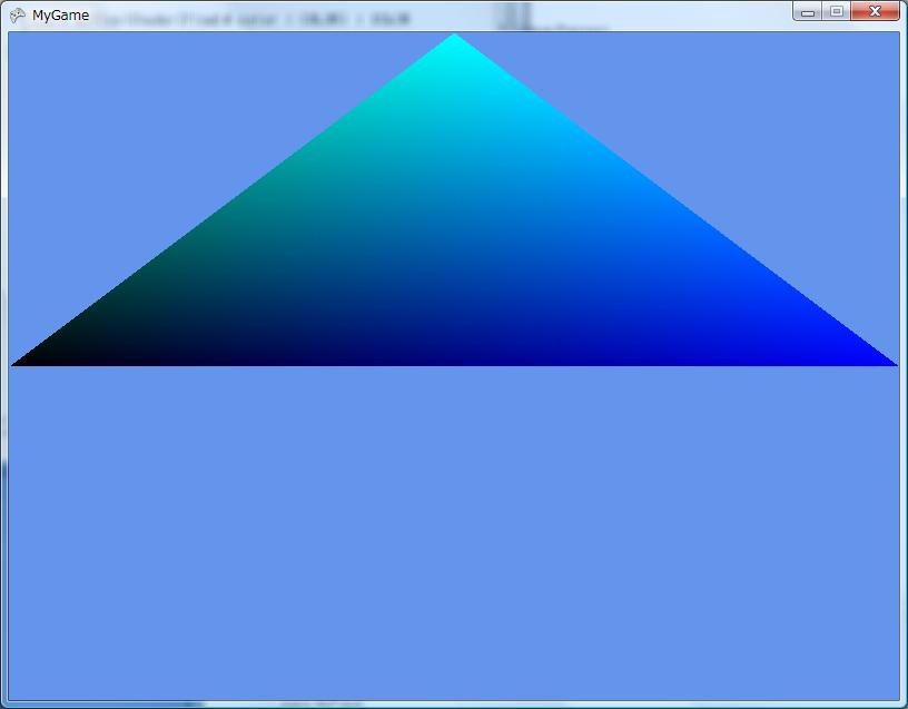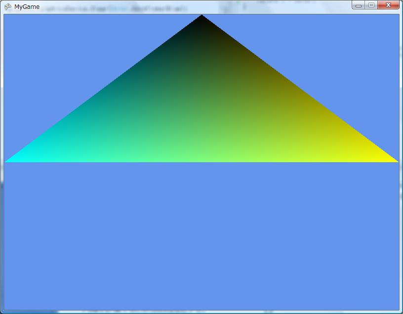 using Microsoft.Xna.Framework; using Microsoft.Xna.Framework.Graphics; class MyGame : Game { GraphicsDeviceManager graphics; Effect effect; VertexPositionColor[] vertices = { new VertexPositionColor(new Vector3(0, 1, 0), Color.White), new VertexPositionColor(new Vector3(1, 0, 0), Color.Blue), new VertexPositionColor(new Vector3(-1, 0, 0), Color.Red) }; public MyGame() { graphics = new GraphicsDeviceManager(this); } protected override void LoadContent() { effect = Content.Load<Effect>("Content/MyEffect"); } protected override void Draw(GameTime gameTime) { GraphicsDevice.Clear(Color.CornflowerBlue); foreach (var pass in effect.CurrentTechnique.Passes) { pass.Apply(); GraphicsDevice.DrawUserPrimitives<VertexPositionColor> ( PrimitiveType.TriangleList, vertices, 0, vertices.Length / 3 ); } } }
