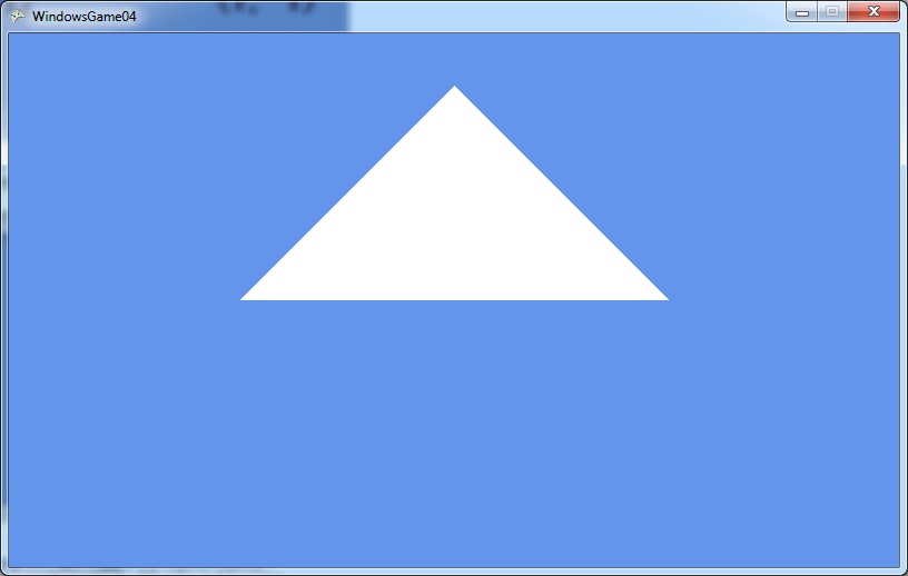 using Microsoft.Xna.Framework; using Microsoft.Xna.Framework.Graphics; class MyGame : Game { GraphicsDeviceManager graphics; BasicEffect effect; VertexPositionColor[] vertices; VertexBuffer vertexBuffer; public MyGame() { graphics = new GraphicsDeviceManager(this); } protected override void Initialize() { vertices = new[] { new VertexPositionColor(new Vector3(1, 0, 0), Color.White), new VertexPositionColor(new Vector3(-1, 0, 0), Color.Red), new VertexPositionColor(new Vector3(0, 1, 0), Color.Blue), }; base.Initialize(); } protected override void LoadContent() { effect = new BasicEffect(GraphicsDevice) { VertexColorEnabled = true, View = Matrix.CreateLookAt ( new Vector3(0, 0, 3), //カメラの位置 new Vector3(0, 0, 0), //カメラの見る点 new Vector3(0, 1, 0) //カメラの上向きベクトル ), Projection = Matrix.CreatePerspectiveFieldOfView ( MathHelper.ToRadians(45), //視野の角度。ここでは45° GraphicsDevice.Viewport.AspectRatio,//画面のアスペクト比(=横/縦) 1, //カメラからこれより近い物体は画面に映らない 100 //カメラからこれより遠い物体は画面に映らない ) }; vertexBuffer = new VertexBuffer( GraphicsDevice, typeof(VertexPositionColor), vertices.Length, BufferUsage.None ); vertexBuffer.SetData<VertexPositionColor>(vertices); } protected override void UnloadContent() { effect.Dispose(); vertexBuffer.Dispose(); } protected override void Draw(GameTime gameTime) { GraphicsDevice.Clear(Color.CornflowerBlue); foreach (var pass in effect.CurrentTechnique.Passes) { pass.Apply(); GraphicsDevice.SetVertexBuffer(vertexBuffer); GraphicsDevice.DrawPrimitives( PrimitiveType.TriangleList, 0, //startIndex vertices.Length / 3 //primitiveCount ); } } }