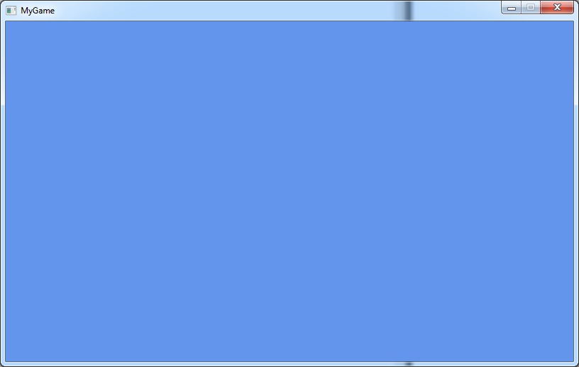 using Microsoft.Xna.Framework; class MyGame : Game { GraphicsDeviceManager graphics; public MyGame() { graphics = new GraphicsDeviceManager(this); } protected override void Draw(GameTime gameTime) { GraphicsDevice.Clear(Color.CornflowerBlue); } static void Main() { using (MyGame game = new MyGame()) { game.Run(); } } }