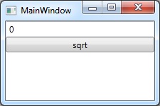 <Window x:Class="WpfApplication1.MainWindow" xmlns="http://schemas.microsoft.com/winfx/2006/xaml/presentation" xmlns:x="http://schemas.microsoft.com/winfx/2006/xaml" xmlns:src="clr-namespace:WpfApplication1" Title="MainWindow" Height="150" Width="225"> <Window.Resources> <src:TestViewModel x:Key="viewModel"/> </Window.Resources> <StackPanel DataContext="{StaticResource viewModel}"> <TextBox Text="{Binding Number}"/> <Button Content="sqrt" Command="{Binding SqrtCommand}"/> </StackPanel> </Window>