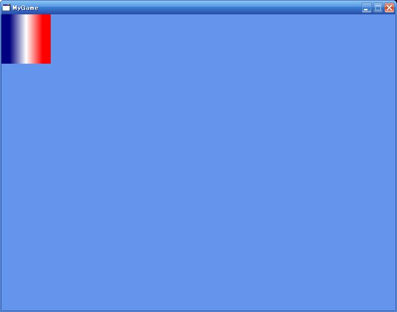spriteBatch.Begin(); spriteBatch.Draw(texture, new Rectangle(0, 0, 100, 100), Color.White); spriteBatch.End(); }
