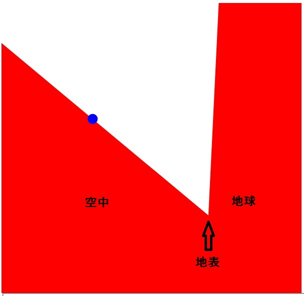 地面においたものが重力によって地球の中心に落ちたりはしない理由もポテンシャルエネルギーによって説明できます。もちろん常識的には地面に遮られてそれ以上落ちることが出来ないからですが、「遮られてそれより向こう側に行けない」というのはポテンシャルエネルギーの壁に阻まれているということなのです。