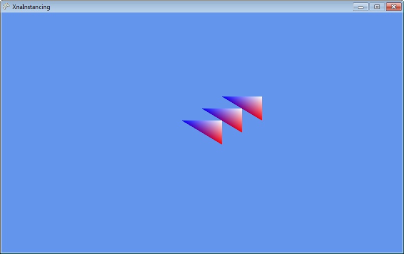 using Microsoft.Xna.Framework; using Microsoft.Xna.Framework.Graphics; using Microsoft.Xna.Framework.Content; class MyGame : Game { VertexPositionColor[] vertices = new VertexPositionColor[]{ new VertexPositionColor(new Vector3(-0.1f, 0.1f, 0), Color.Blue), new VertexPositionColor(new Vector3(0.1f, 0.1f, 0), Color.White), new VertexPositionColor(new Vector3(0.1f, -0.1f, 0), Color.Red) }; Vector3[] instances = new Vector3[] { new Vector3(), new Vector3(0.1f, 0.1f, 0), new Vector3(0.2f, 0.2f, 0) }; //Graphics Device Objects Effect effect; VertexBuffer triangleVertexBuffer; IndexBuffer indexBuffer; DynamicVertexBuffer instanceVertexBuffer; public MyGame() { new GraphicsDeviceManager(this); Content.RootDirectory = "Content"; } protected override void LoadContent() { effect = Content.Load<Effect>("HardwareInstancing"); triangleVertexBuffer = new VertexBuffer( GraphicsDevice, VertexPositionColor.VertexDeclaration, vertices.Length, BufferUsage.WriteOnly ); triangleVertexBuffer.SetData<VertexPositionColor>(vertices); var index = new int[] { 0, 1, 2 }; indexBuffer = new IndexBuffer( GraphicsDevice, IndexElementSize.ThirtyTwoBits, index.Length, BufferUsage.WriteOnly ); indexBuffer.SetData<int>(index); instanceVertexBuffer = new DynamicVertexBuffer( GraphicsDevice, new VertexDeclaration( new VertexElement(0, VertexElementFormat.Vector3, VertexElementUsage.Position, 1) ), instances.Length, BufferUsage.WriteOnly); instanceVertexBuffer.SetData(instances); } protected override void Draw(GameTime gameTime) { GraphicsDevice.Clear(Color.CornflowerBlue); GraphicsDevice.SetVertexBuffers( new VertexBufferBinding(triangleVertexBuffer, 0, 0), new VertexBufferBinding(instanceVertexBuffer, 0, 1) ); GraphicsDevice.Indices = indexBuffer; instanceVertexBuffer.SetData(instances, 0, instances.Length, SetDataOptions.Discard); foreach (var pass in effect.CurrentTechnique.Passes) { pass.Apply(); GraphicsDevice.DrawInstancedPrimitives( PrimitiveType.TriangleList, 0, 0, vertices.Length, 0, vertices.Length / 3, instances.Length ); } } }