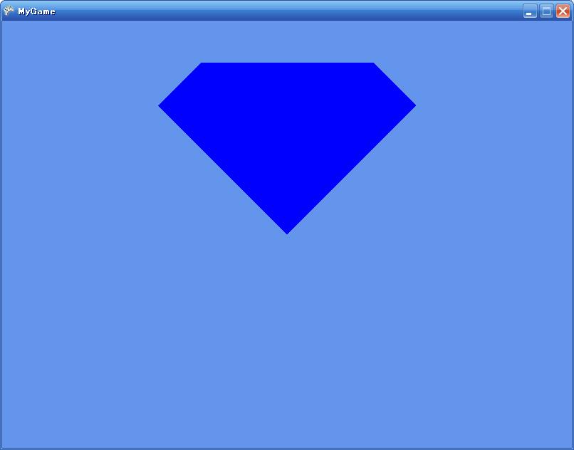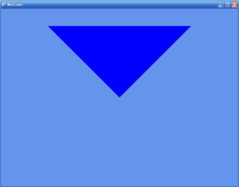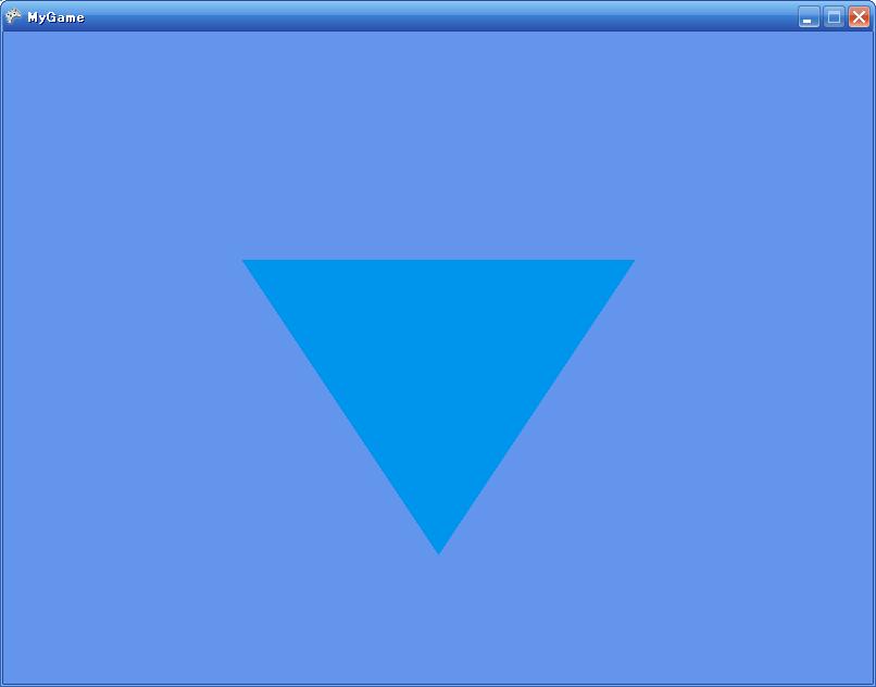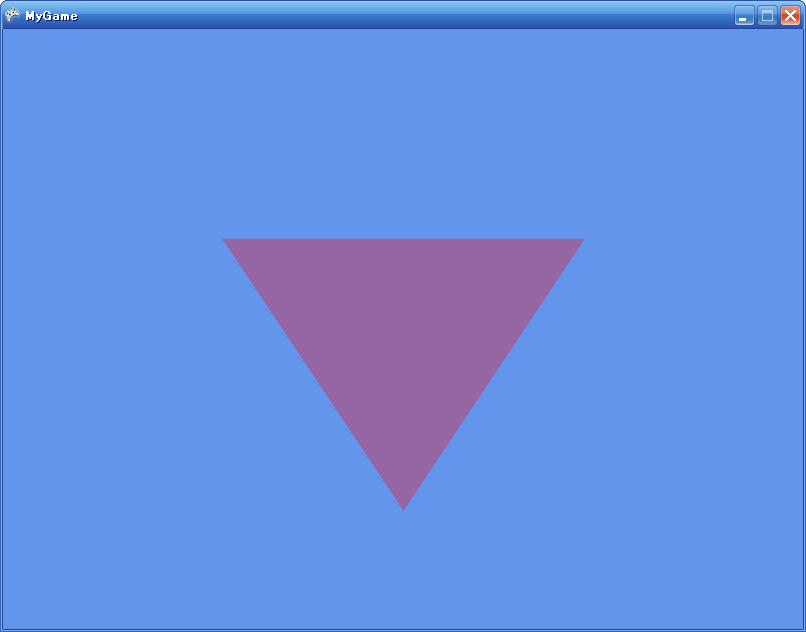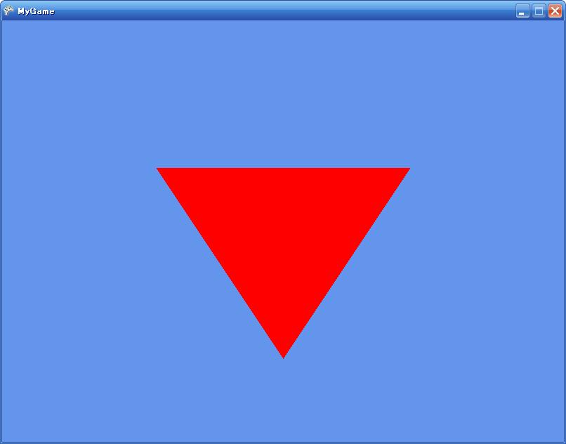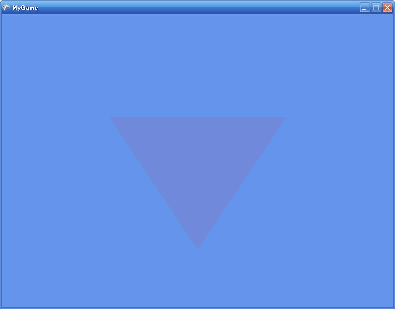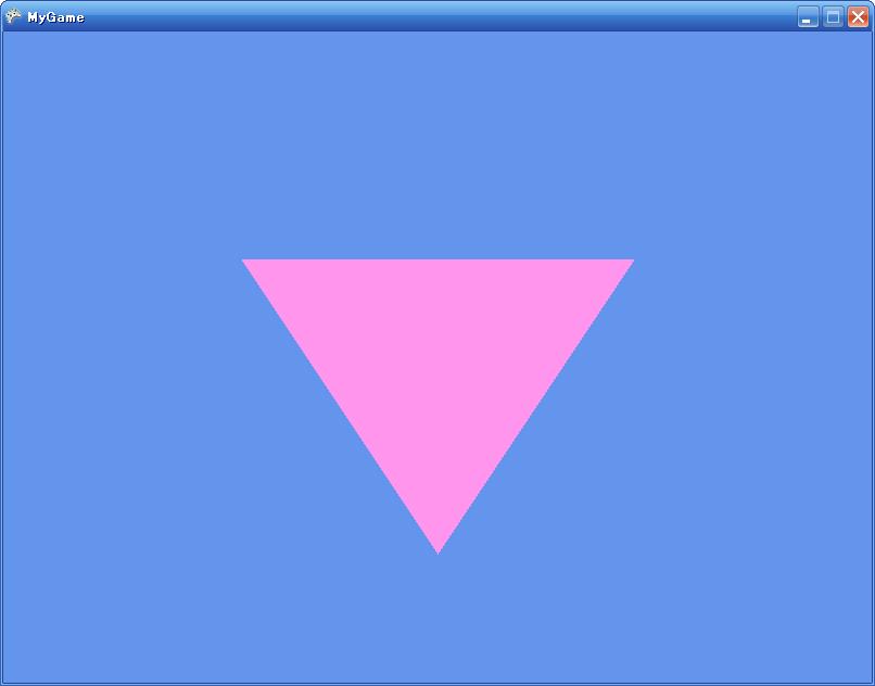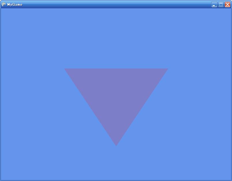 using Microsoft.Xna.Framework; using Microsoft.Xna.Framework.Graphics; class Triangle { VertexPositionColor[] vertices = new VertexPositionColor[3]; public Triangle(Vector3 p1, Vector3 p2, Vector3 p3, Color color) { vertices[0] = new VertexPositionColor(p1, color); vertices[1] = new VertexPositionColor(p2, color); vertices[2] = new VertexPositionColor(p3, color); } public void Draw(GraphicsDevice graphicsDevice, BasicEffect effect) { effect.VertexColorEnabled = true; foreach (EffectPass pass in effect.CurrentTechnique.Passes) { pass.Apply(); graphicsDevice.DrawUserPrimitives<VertexPositionColor>( PrimitiveType.TriangleList, vertices, 0, 1 ); } } } class MyGame : Game { GraphicsDeviceManager graphics; BasicEffect effect; Triangle redTriangle = new Triangle ( new Vector3(1, 0.5f, -1), new Vector3(0, -1, -1), new Vector3(-1, 0.5f, -1), Color.Red ); public MyGame() { graphics = new GraphicsDeviceManager(this); } protected override void LoadContent() { effect = new BasicEffect(GraphicsDevice) { View = Matrix.CreateLookAt ( new Vector3(0, 0, 3), //カメラの位置 new Vector3(0, 0, 0), //カメラの見る点 new Vector3(0, 1, 0) //カメラの上向きベクトル ), Projection = Matrix.CreatePerspectiveFieldOfView ( MathHelper.ToRadians(45), //視野の角度。ここでは45° GraphicsDevice.Viewport.AspectRatio,//画面のアスペクト比(=横/縦) 1, //カメラからこれより近い物体は画面に映らない 100 //カメラからこれより遠い物体は画面に映らない ) }; } protected override void UnloadContent() { effect.Dispose(); } protected override void Draw(GameTime gameTime) { GraphicsDevice.Clear(Color.CornflowerBlue); GraphicsDevice.BlendState = BlendState.Additive; redTriangle.Draw(GraphicsDevice, effect); } }