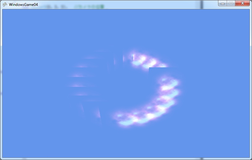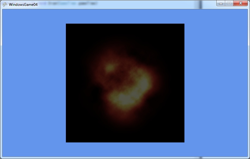 using Microsoft.Xna.Framework; using Microsoft.Xna.Framework.Graphics; class MyGame : Game { GraphicsDeviceManager graphics; BasicEffect effect; VertexPositionTexture[] vertices = new[] { new VertexPositionTexture(new Vector3(-1, 1, 0), new Vector2(0, 0)), new VertexPositionTexture(new Vector3(1, 1, 0), new Vector2(1, 0)), new VertexPositionTexture(new Vector3(1, -1, 0), new Vector2(1, 1)), new VertexPositionTexture(new Vector3(-1, 1, 0), new Vector2(0, 0)), new VertexPositionTexture(new Vector3(1, -1, 0), new Vector2(1, 1)), new VertexPositionTexture(new Vector3(-1, -1, 0), new Vector2(0, 1)), }; Texture2D texture; public MyGame() { graphics = new GraphicsDeviceManager(this); } protected override void LoadContent() { effect = new BasicEffect(GraphicsDevice) { TextureEnabled = true, View = Matrix.CreateLookAt ( new Vector3(0, 0, 3), //カメラの位置 new Vector3(0, 0, 0), //カメラの見る点 new Vector3(0, 1, 0) //カメラの上向きベクトル ), Projection = Matrix.CreatePerspectiveFieldOfView ( MathHelper.ToRadians(45), //視野の角度。ここでは45° GraphicsDevice.Viewport.AspectRatio,//画面のアスペクト比(=横/縦) 1, //カメラからこれより近い物体は画面に映らない 100 //カメラからこれより遠い物体は画面に映らない ) }; texture = Content.Load<Texture2D>("Content/explosion"); } protected override void UnloadContent() { effect.Dispose(); } protected override void Draw(GameTime gameTime) { GraphicsDevice.Clear(Color.CornflowerBlue); GraphicsDevice.BlendState = BlendState.Additive; effect.Texture = texture; foreach (var pass in effect.CurrentTechnique.Passes) { pass.Apply(); GraphicsDevice.DrawUserPrimitives<VertexPositionTexture>( PrimitiveType.TriangleList, vertices, 0, vertices.Length / 3 ); } } }
